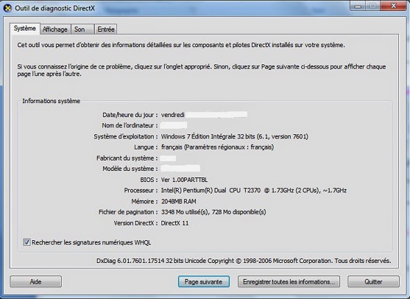 une fenêtre contenant toutes les informations relatives à votre ordinateur et de ses composants :systeme,:processeur, ram, son , image etc
